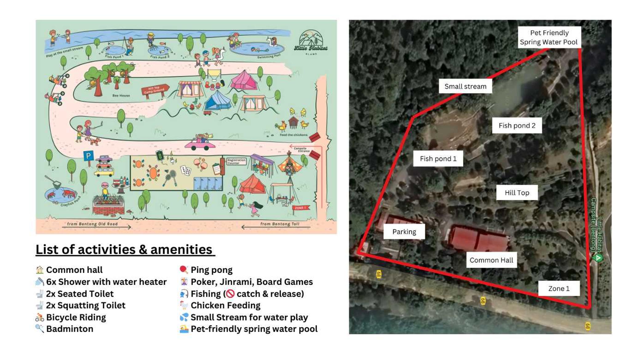 - The activities provided by the campsite are not included in Little Habitat package. Participation in any activities at the campsite is at its own risk. Little Habitat is not responsible for any injuries.